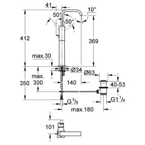 Высота до аэратора (см)